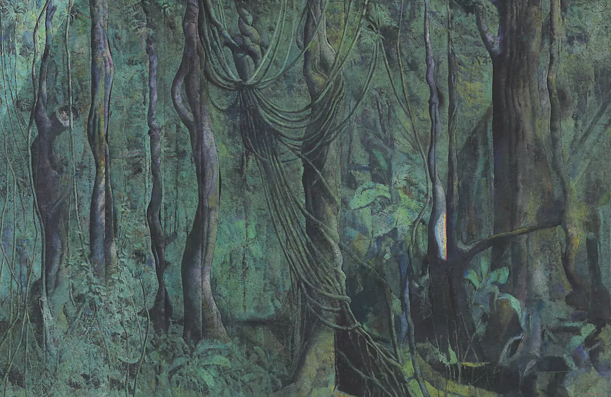 Armando Morales. Rain Forest Near Bartola, Rio San Juan, Nicaragua, 2000. Oil on canvas with beeswax. Courtesy of the artist.