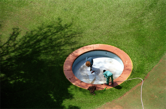 Otobong Nkanga, Workmen in Pool 1, 2005 C-print, 23.5 x 35.5 in. (60 x 90 cm). Courtesy of the artist.