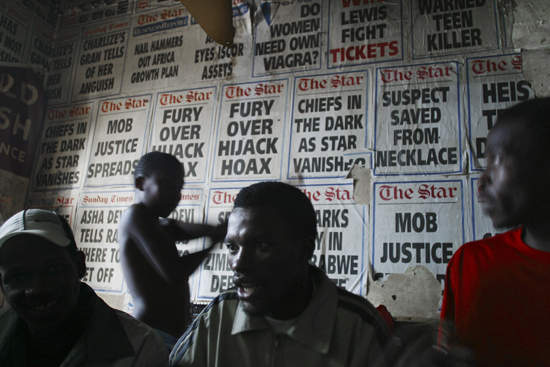 Guy Tillim. Ntokozo and his brother Vusi Tshabalala at Ntokozo’s place, Milton Court, Pritchard Street, Johannesburg, 2004. Pigment print on cotton paper, 19 3/4 x 28 1/8 in. Courtesy of the International Center of Photography and the artist.
