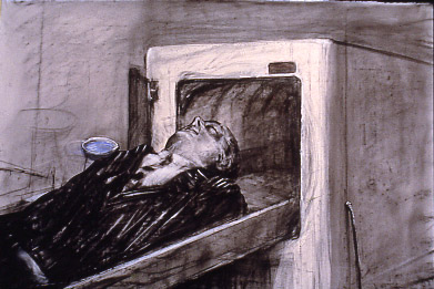 The exhibition at Miami Art Central includes works spanning from 1979 to 2004, emphasizing Kentridge’s commitment to exploring the intersections of image, narrative, and political consciousness. A centerpiece of the show is Tide Table (2003–2004), a deeply introspective film that revisits the character of Soho Eckstein in a reflection on illness, vulnerability, and the failures of empathy in the face of social inequality. The exhibition also features a selection of early and recent charcoal drawings, animated films, and sculptural installations such as Sleeping on Glass (1999) and Medicine Chest (2000), in which moving images are projected onto everyday objects, transforming them into intimate, cinematic devices.